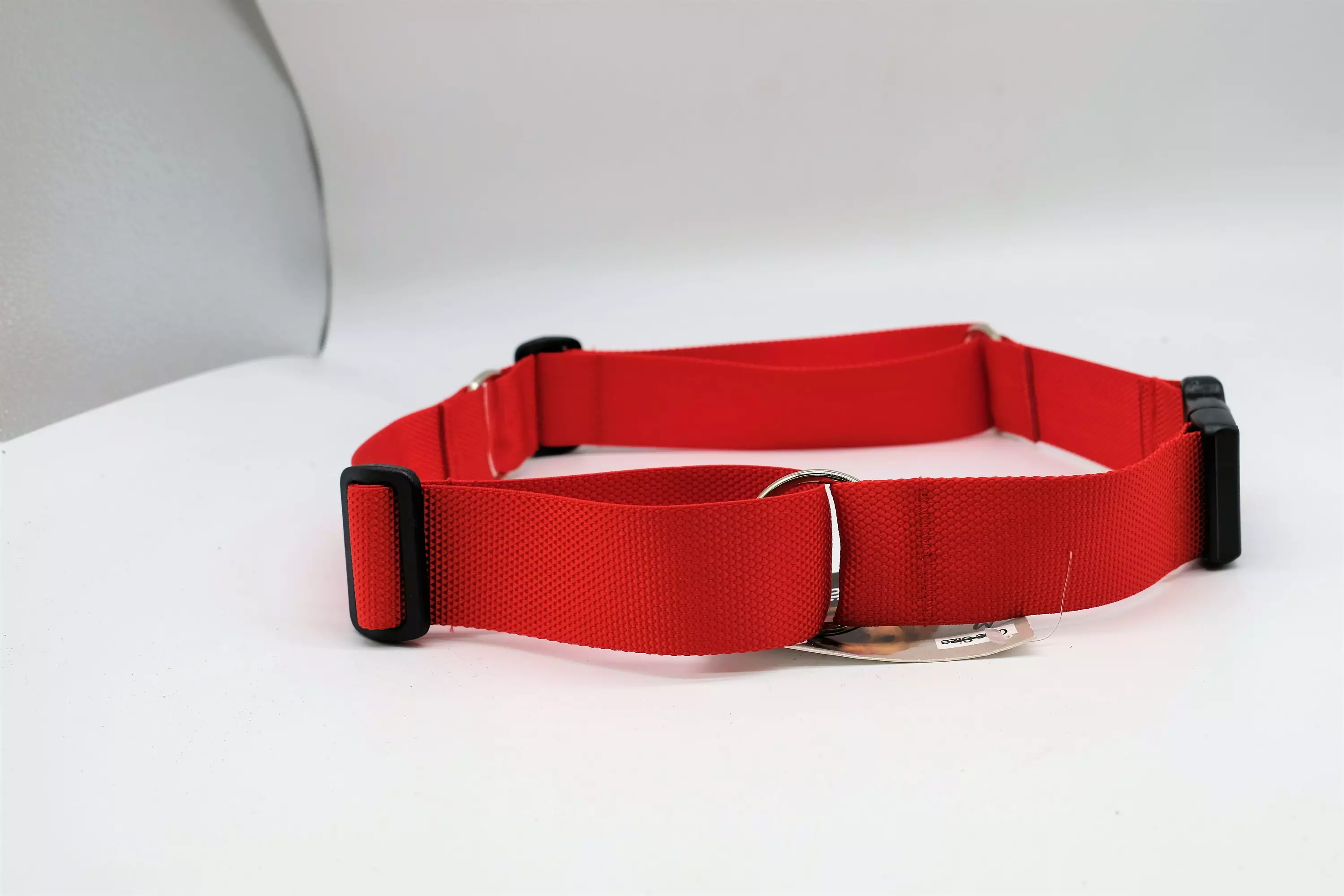 Vyössä on metalliset D ja O -renkaat koiran kytkemistä varten. Vapaana olevaan